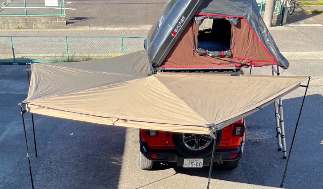 ルーフトップテントやオーニングの広げ方もスタッフさんが丁寧にレクチャーしてくれたので、オートキャンプ場ではすぐに設営できました。