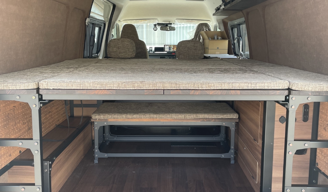 シンプルなデザインながらこだわりが詰まったベンツスプリンターや、リアシートを自由にカスタマイズできるハイエースなど、すべてグランプ完全オリジナル。